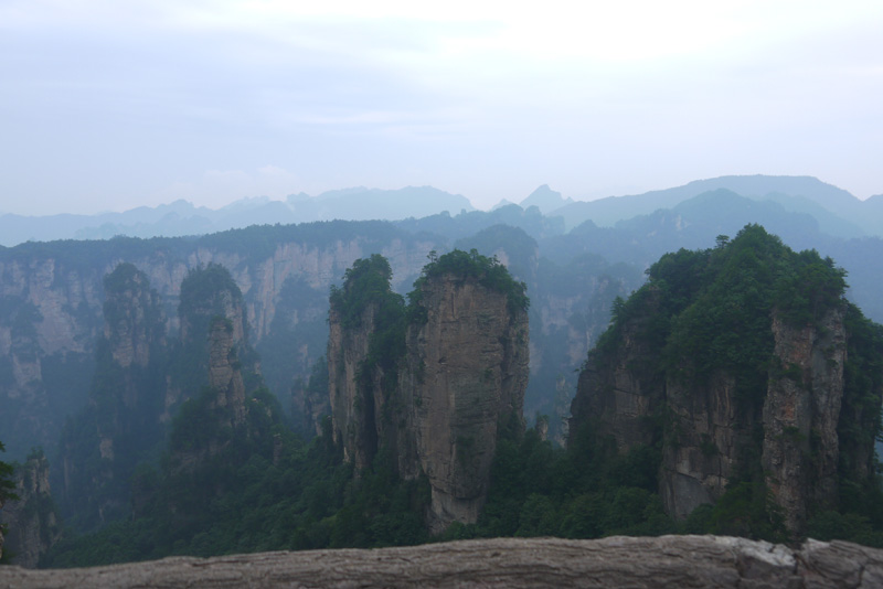 我們的第二站:袁家界。在這里,我感受到了一個現(xiàn)代高科技帶來的震撼。站在高度300多米的百龍?zhí)焯莸耐该飨潴w里,隨著天梯的緩緩上升,我們就像鳥兒一樣穿出山體,劈開云霧,沖天而起,一種從未有過的刺激感引得我們聲聲尖叫。到達山頂,一排排石巖赫然展現(xiàn)在我們眼前,高低錯落,森然有序,儼然列隊的將士,聽導游說,這便是48將軍巖,真是“壯如其名”。